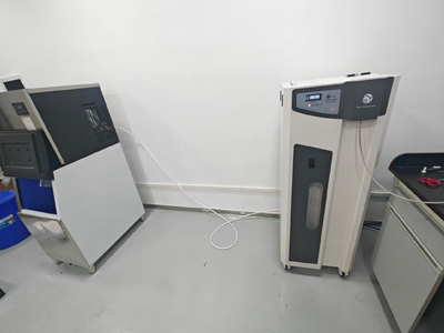 该设备配备40升储水系统,支持多点位智能取水,配备水质在线监测功能,实时显示电导率、温度等关键参数。渗源技术团队根据企业实验室的洁净与防静电要求,优化了设备布局与管路材质,并提供专业操作与维护培训。