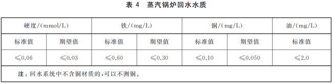 5.1 蒸汽锅炉回水水质宜符合表 4 的规定。